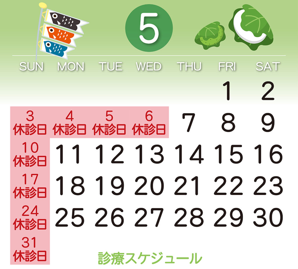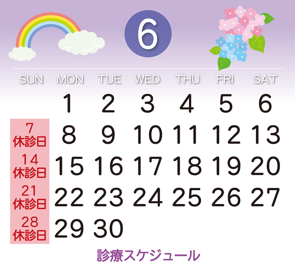 診療スケジュールのお知らせ|2026年4月 、5月、6月